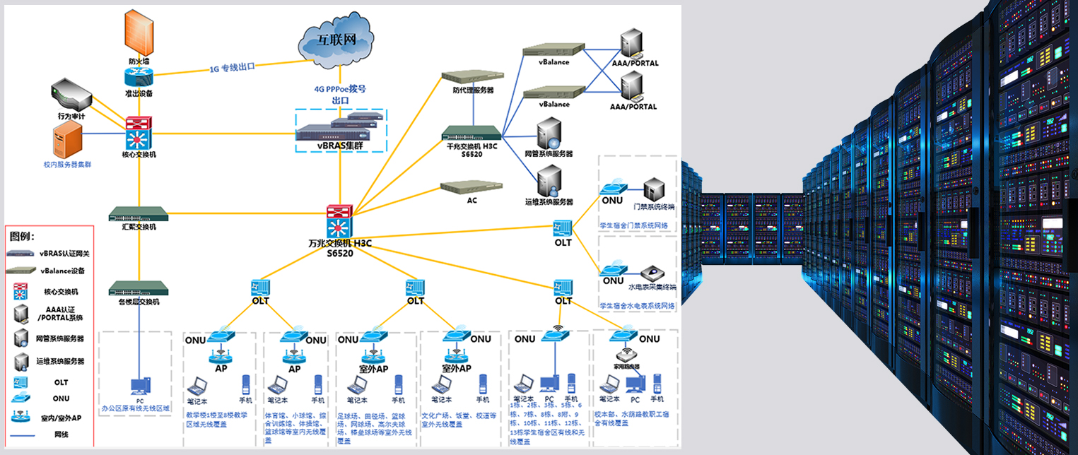 ♦ 安全快速:學(xué)生宿舍千兆接入 滿足公安審計需求;