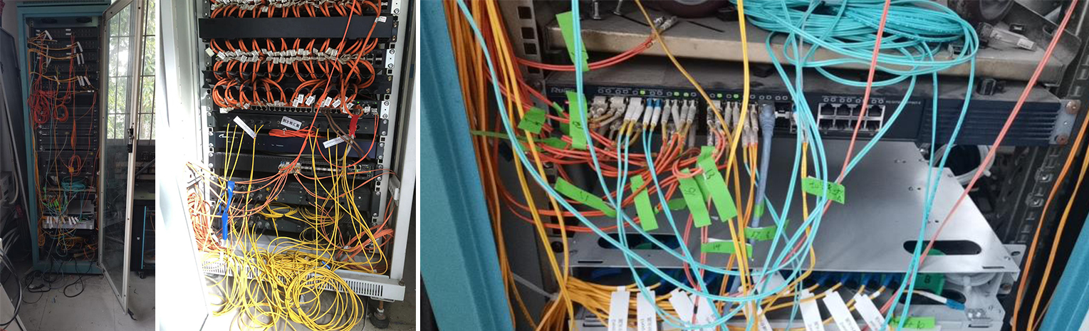 ◆ 線路老化:學(xué)校網絡布線采用雙絞線纜,帶寬受限,難以擴展,線路老化,線槽內(nèi)線路雜亂無序